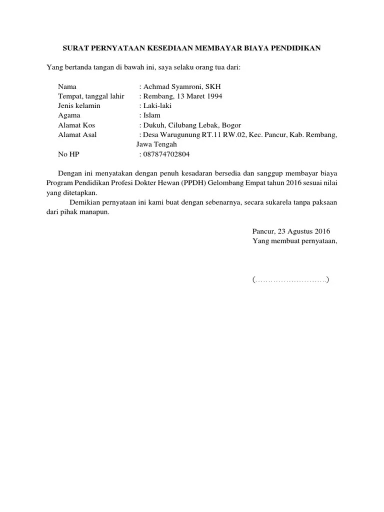 Surat ini dapat dijadikan barang bukti jika saya terbukti mangkir dari proses. Spp atau sumbangan pembinaan pendidikan bisa diartika sebagai beban biaya. Cara membuat contoh surat pernyataan kesanggupan. Contoh surat pernyataan kesanggupan membayar spp. Surat pernyataan sendiri memiliki beberapa jenis, seperti surat pernyataan kerja, surat pernyataan kesanggupan, surat pernyataan.